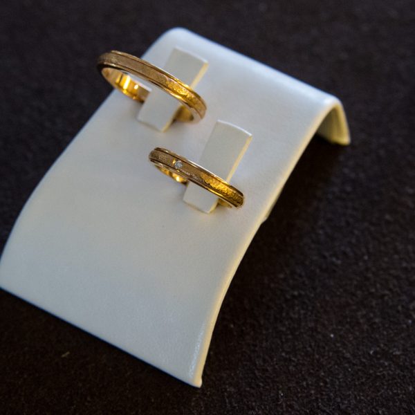 Fedi lavorate in oro rosa con diamante