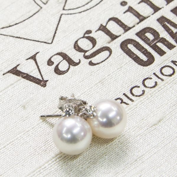 Orecchini in oro bianco con perle giapponesi e diamanti